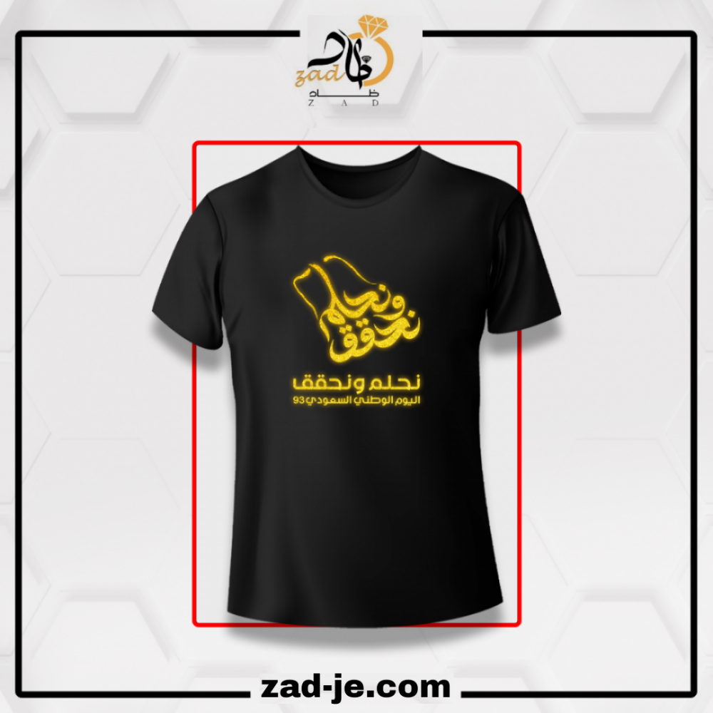 عرض مميز للاحتفال باليوم الوطني السعودي 93. تيشيرت اليوم الوطني السعودي بتصمم مميز و بالهوية الوطنية الرسمية بتصميم هوية اليوم الوطني السعودي 93.
