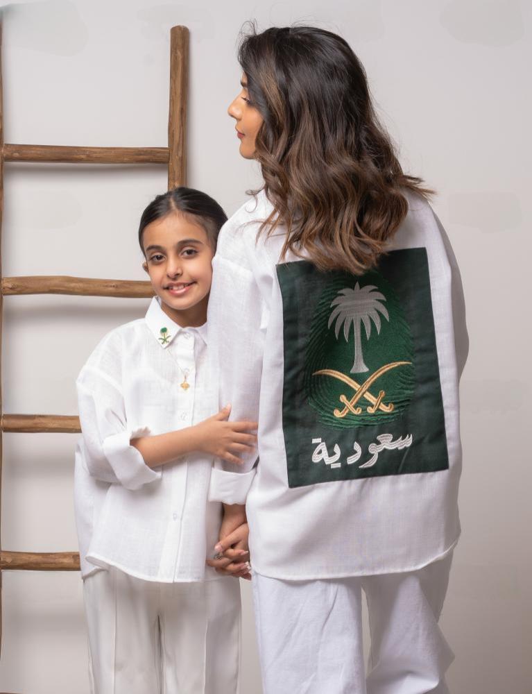 قميص أبيض بتصميم أنيق وعصري مصنوع من الكتان الطبيعي، الذي يتميز بتهويته الممتازة وإحساسه المنعش على البشرة. يتميز بقطعة قماش خضراء مستوحاة من هوية اليوم الوطني 94، مع خيار لتخصيص التطريز ليشمل كلمة “سعودي”، “سعودية”، أو الاسم الذي تختاره.